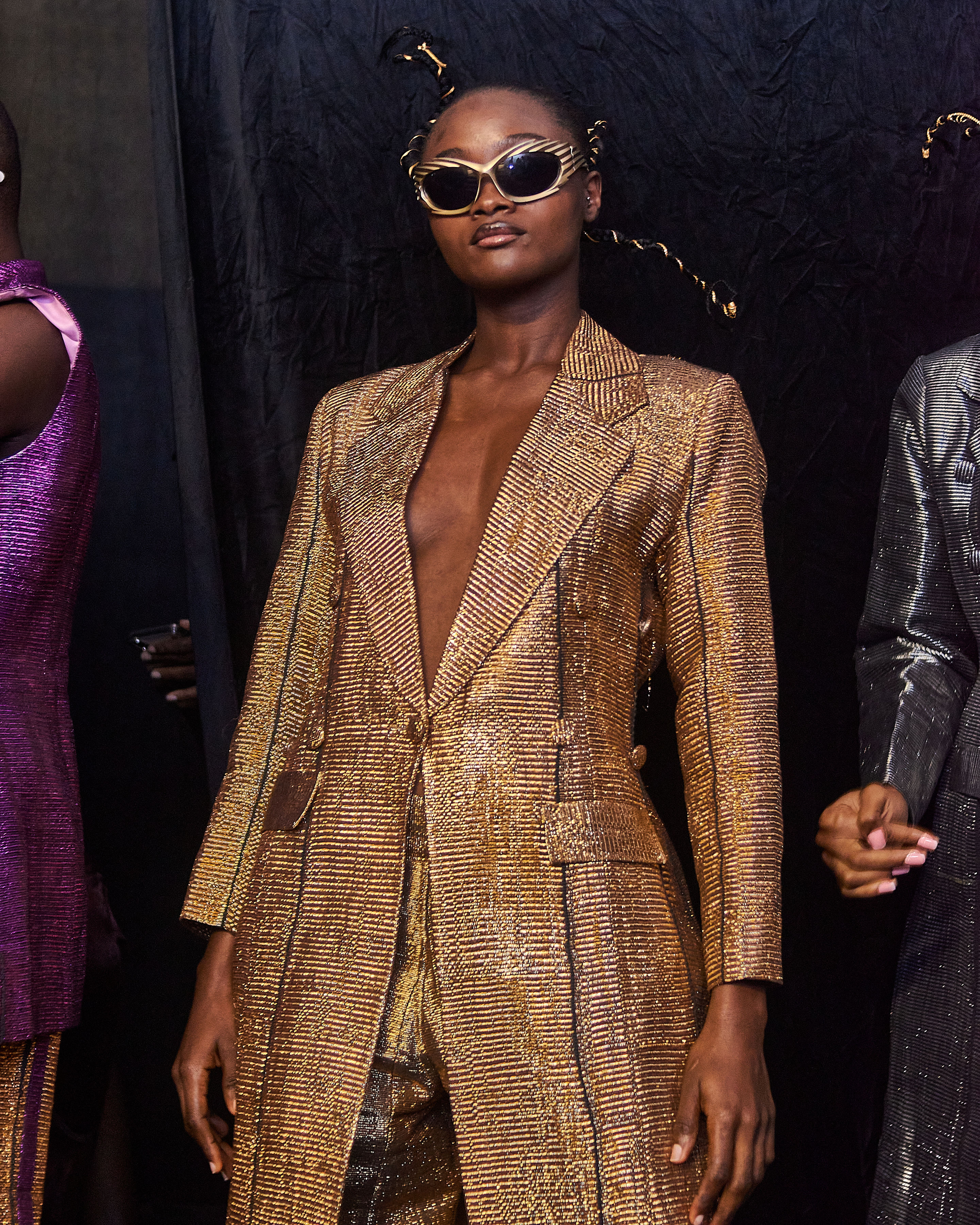 Our favourite behind-the-scenes photos capture those fleeting yet powerful moments as models strike a pose for a quick snapshot before the show. Something is captivating about glimpsing the outfit transformations and expressions of the models, teetering between focused concentration and outright joy.