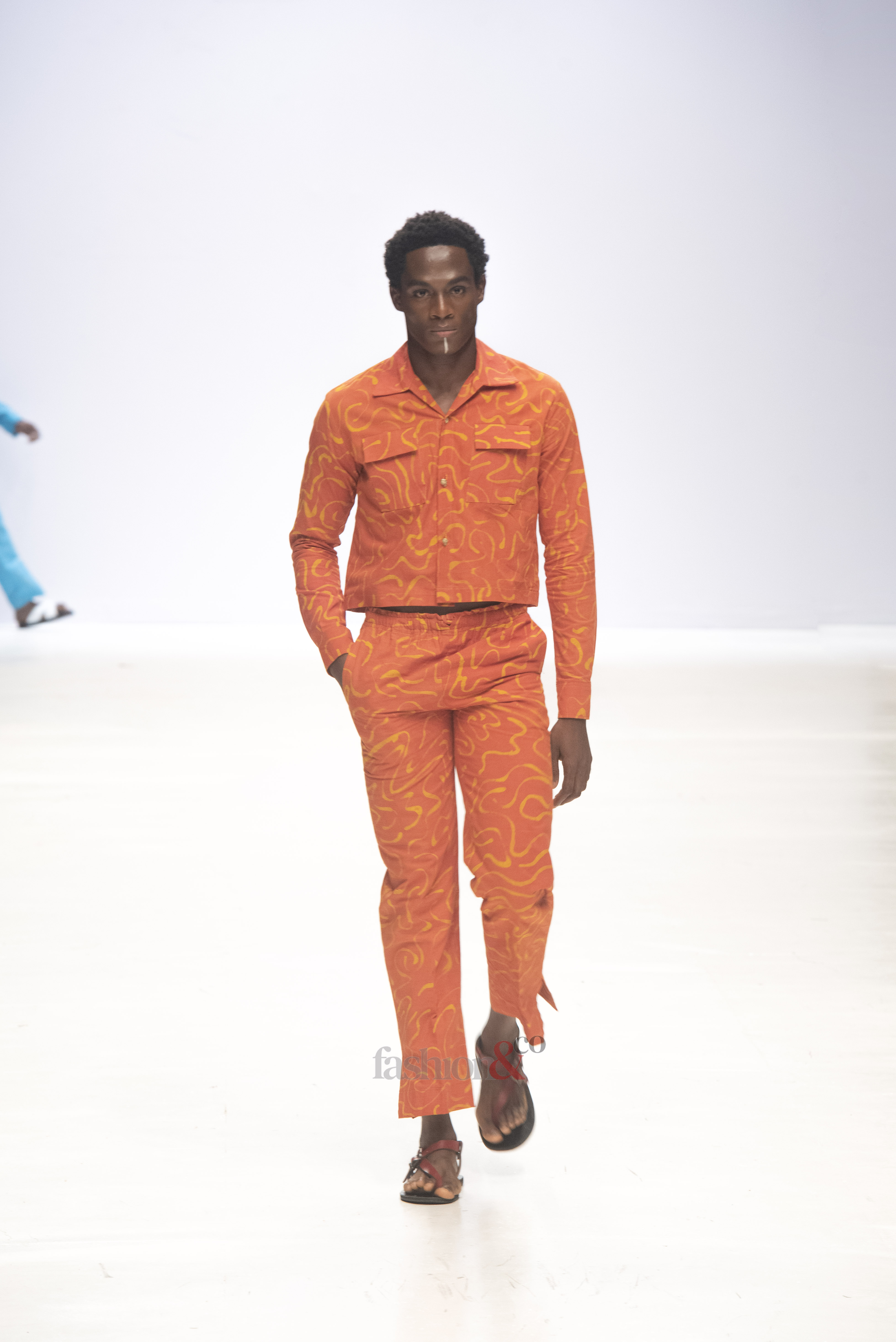 Jermaine Bleu’s Red, Orange, Pink, and Blue Outfits at Lagos Fashion Week 2022