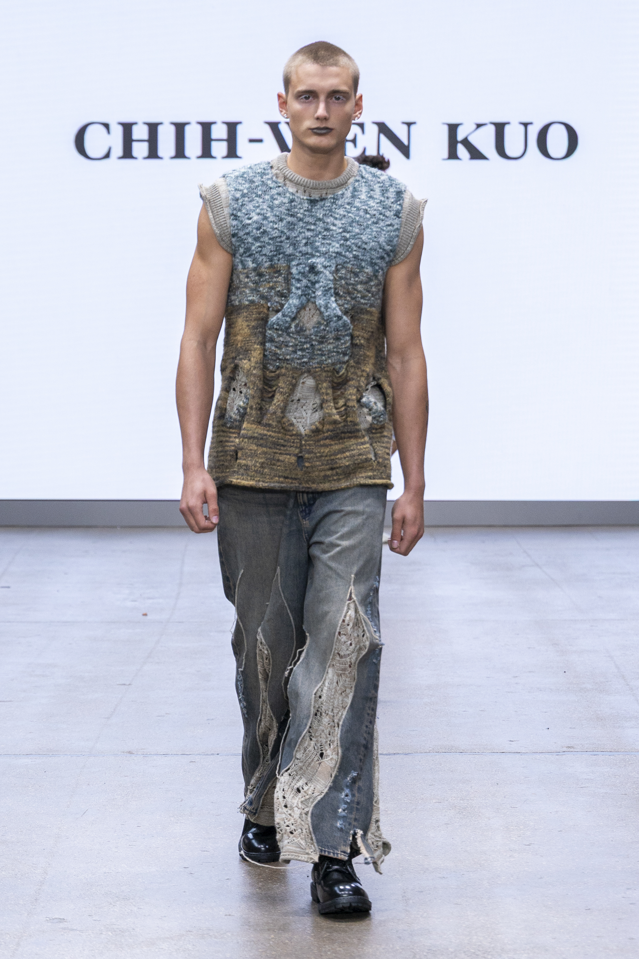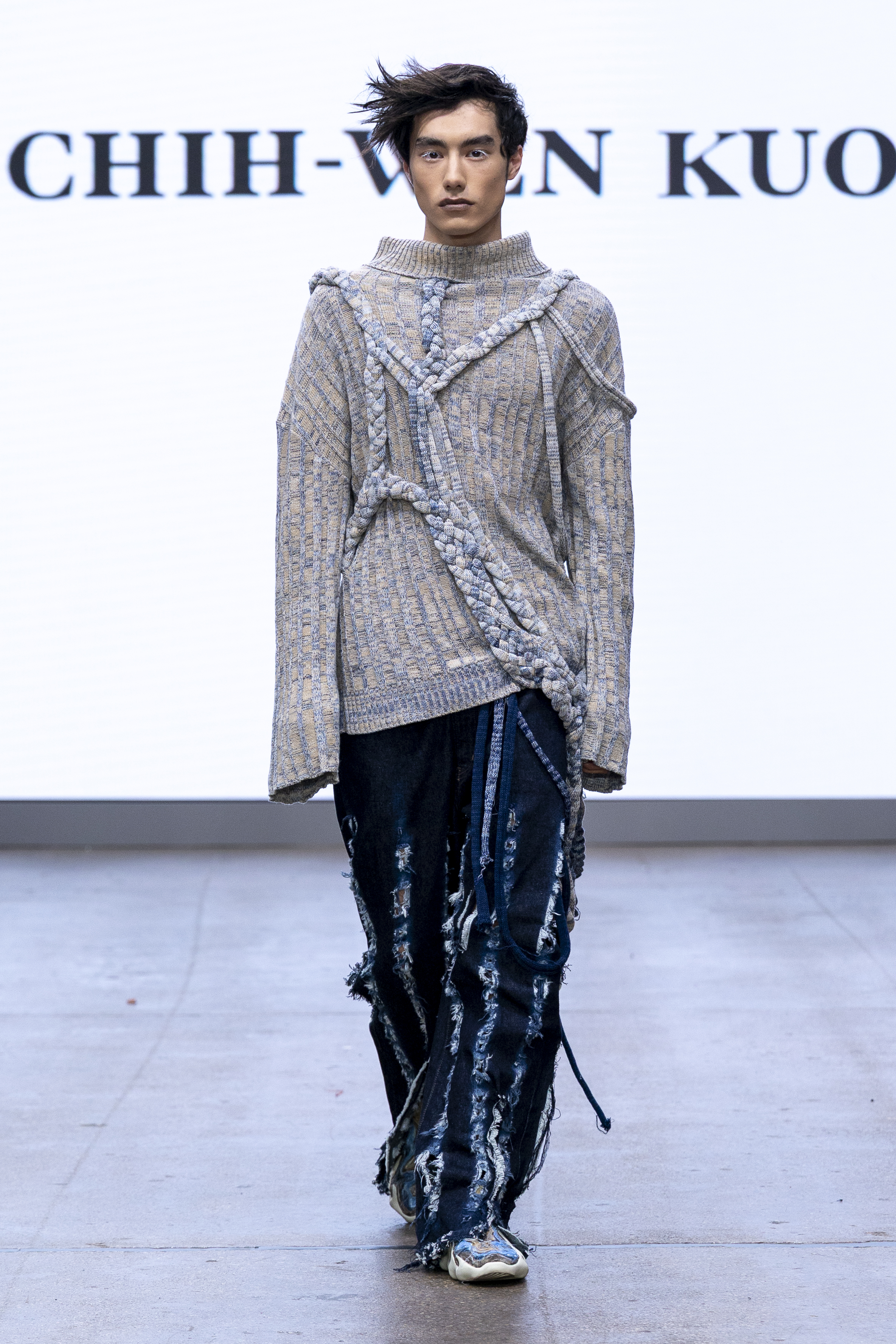 Kuo’s collection, titled *Sedimentation*, draws inspiration from the art of knitting and knotting, translating layered deposits into intricate textile patterns. Each knot serves as a metaphor for memories and moments in time, creating expansive landscapes or sculptural forms that resonate with the ancient practice of recording through textiles. As a graduate of Fu Jen Catholic University and former Design Director at Taiwanese knitwear brand At the Venue, Kuo brings a wealth of expertise to his personal knitwear studio and yarn brand, Wayne Knitted. Follow Kuo on Instagram: @wayne_knitted