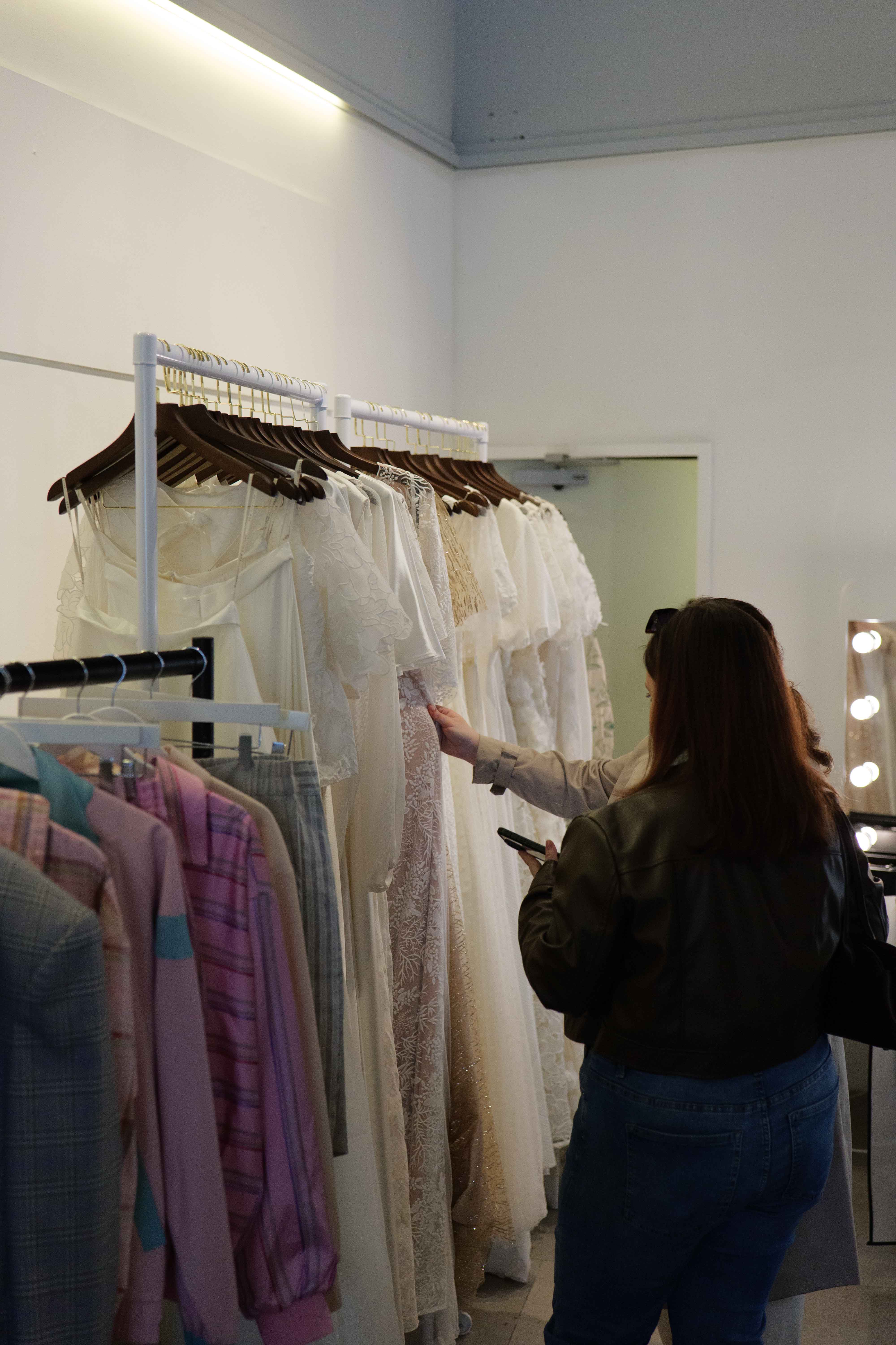 Attendees were invited to engage with inspiration boards, discover fabric swatches, and enjoy one-to-one time with designers, creating a more intimate and interactive showcase. Dedicated hair and makeup stations further enhanced the backstage atmosphere, giving guests a first-hand glimpse into the creative process behind the collections.