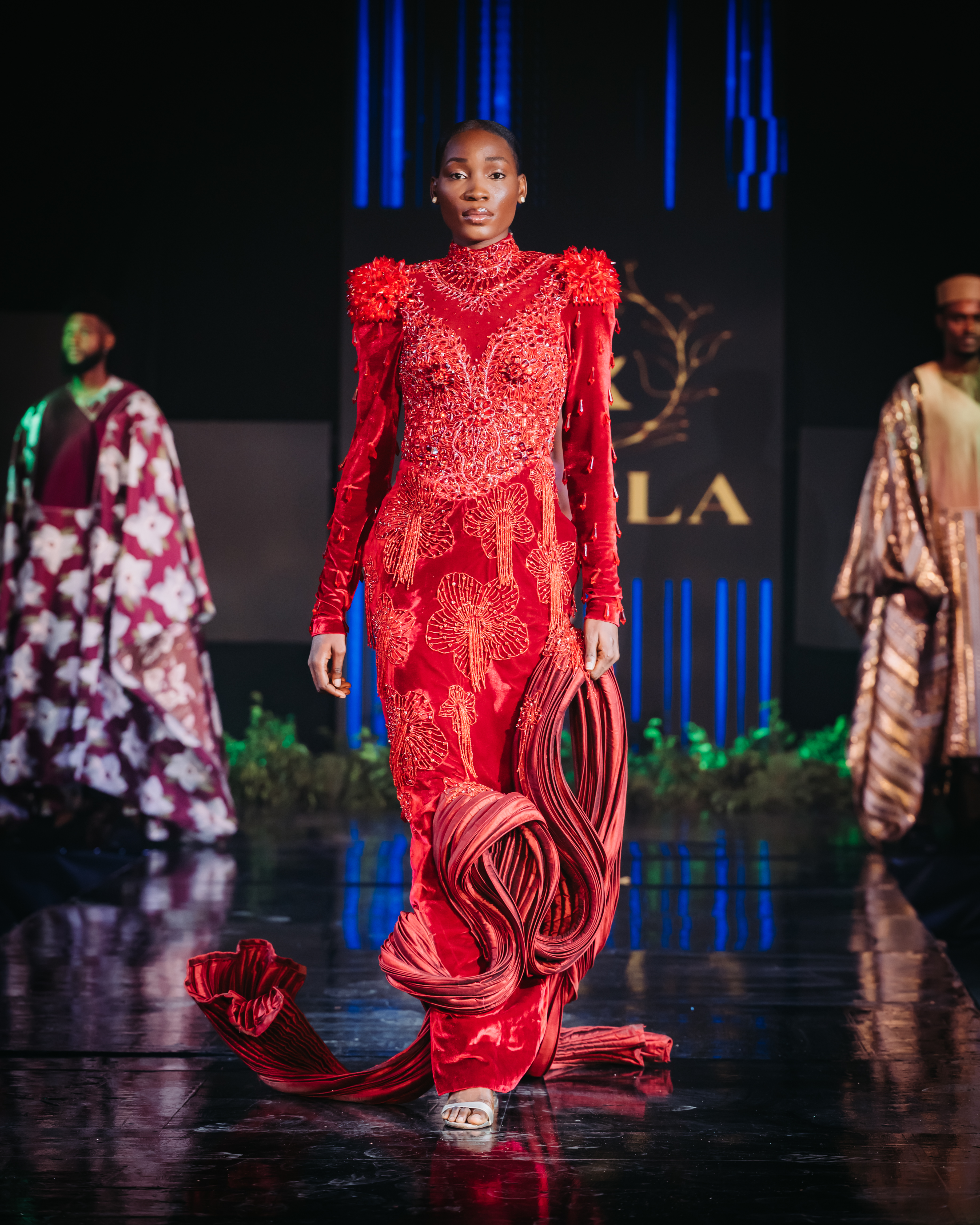 Highlighting the talent of Nigerian designers, the show presented breathtaking collections from esteemed names such as Marté Egele, Bibi Lawrence, Nichole Stylish, Black Adudu, Looks Like a Good Man, Essien, and HRH Luxury. Stealing the spotlight, T. Atelier debuted its collection with an avant-garde touch, utilizing an innovative 3D AI display that set a new standard in fashion presentation.