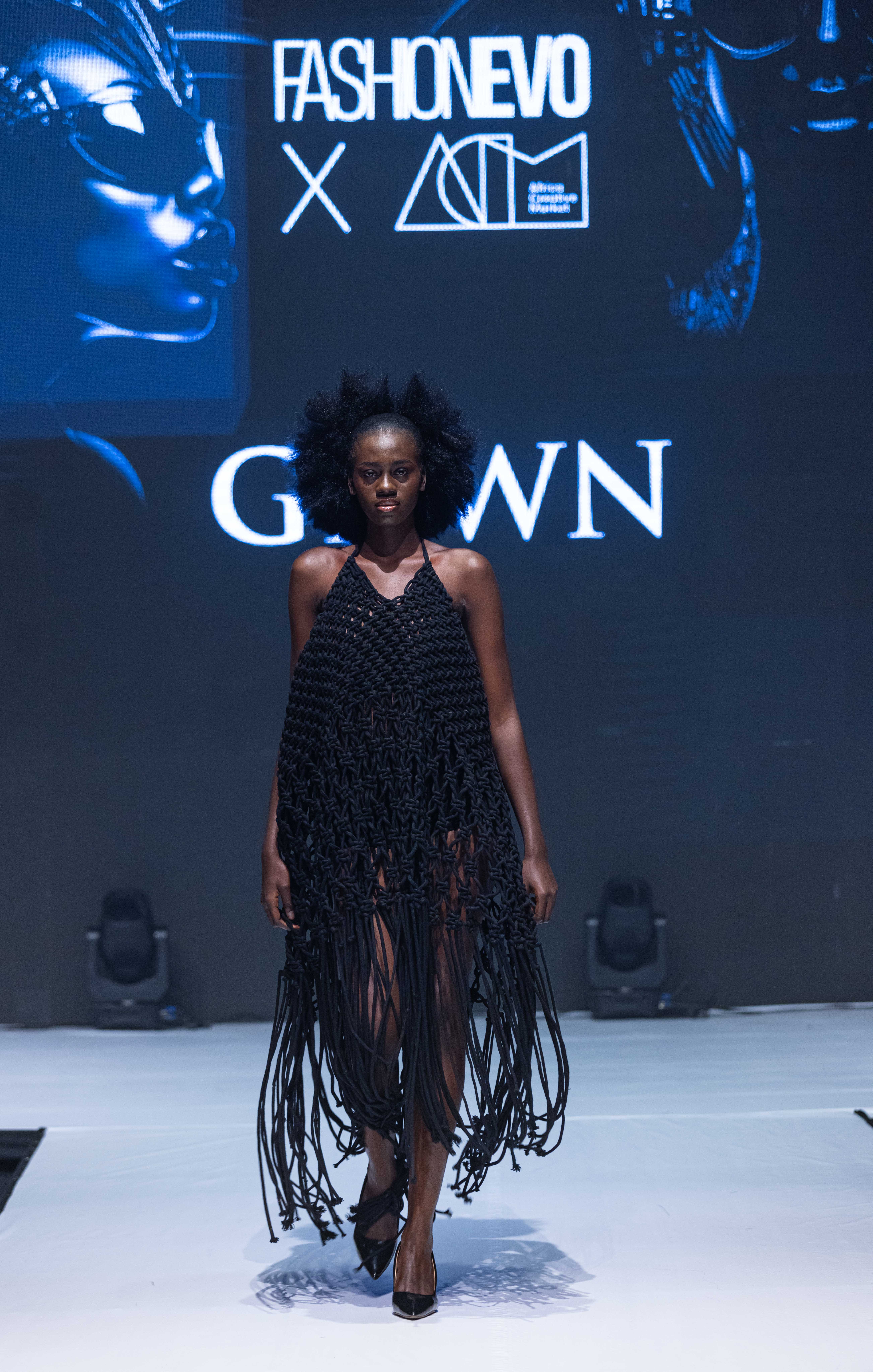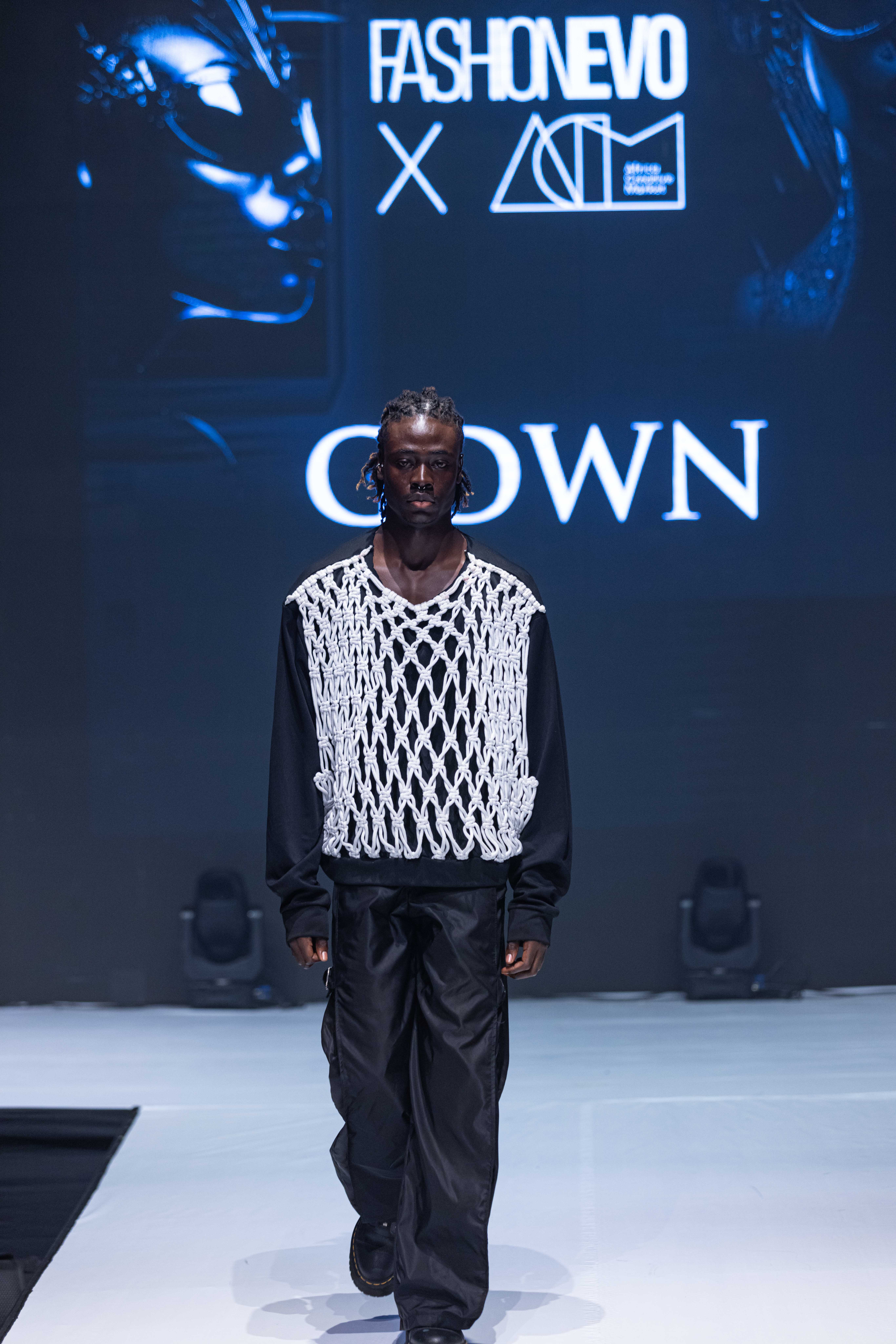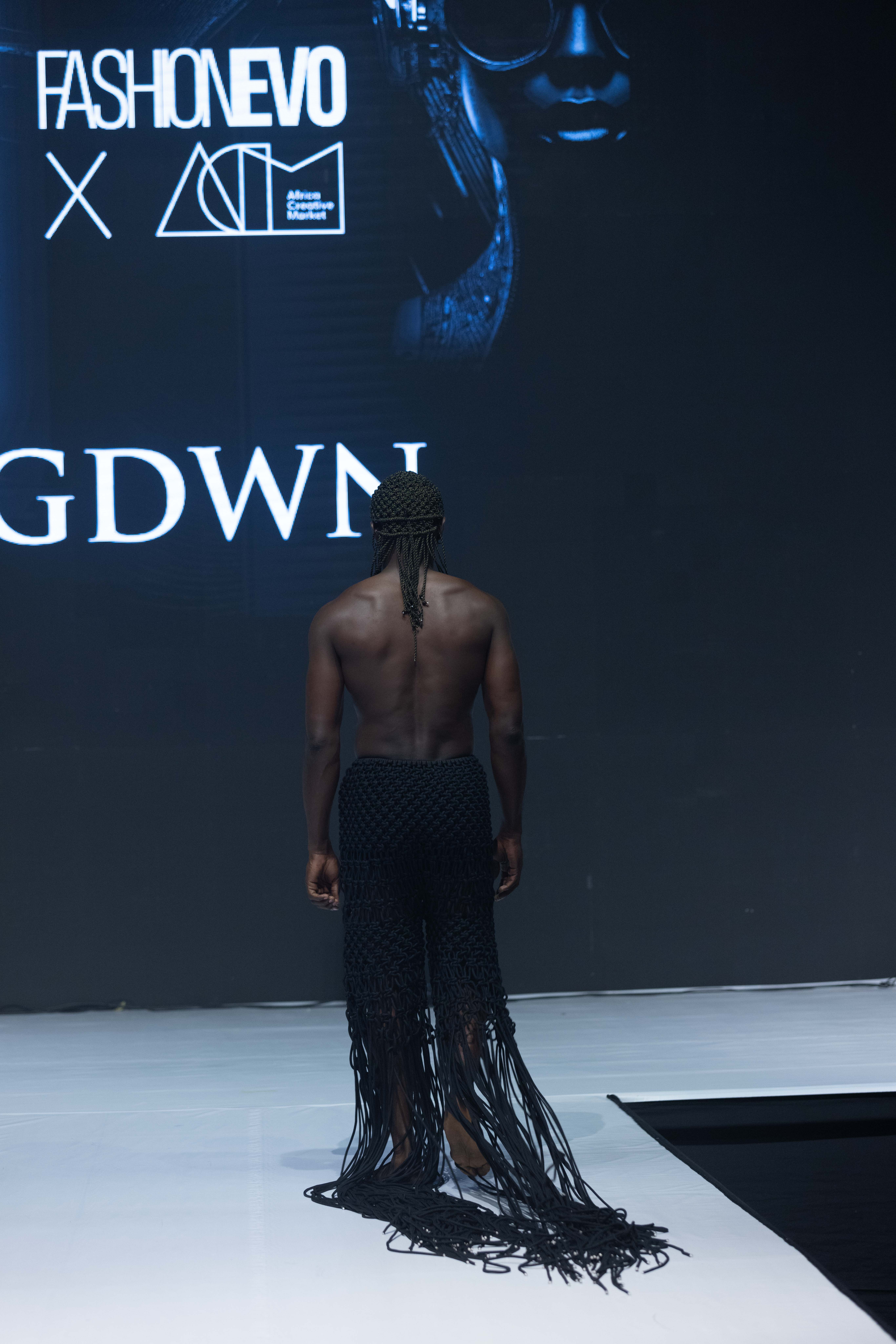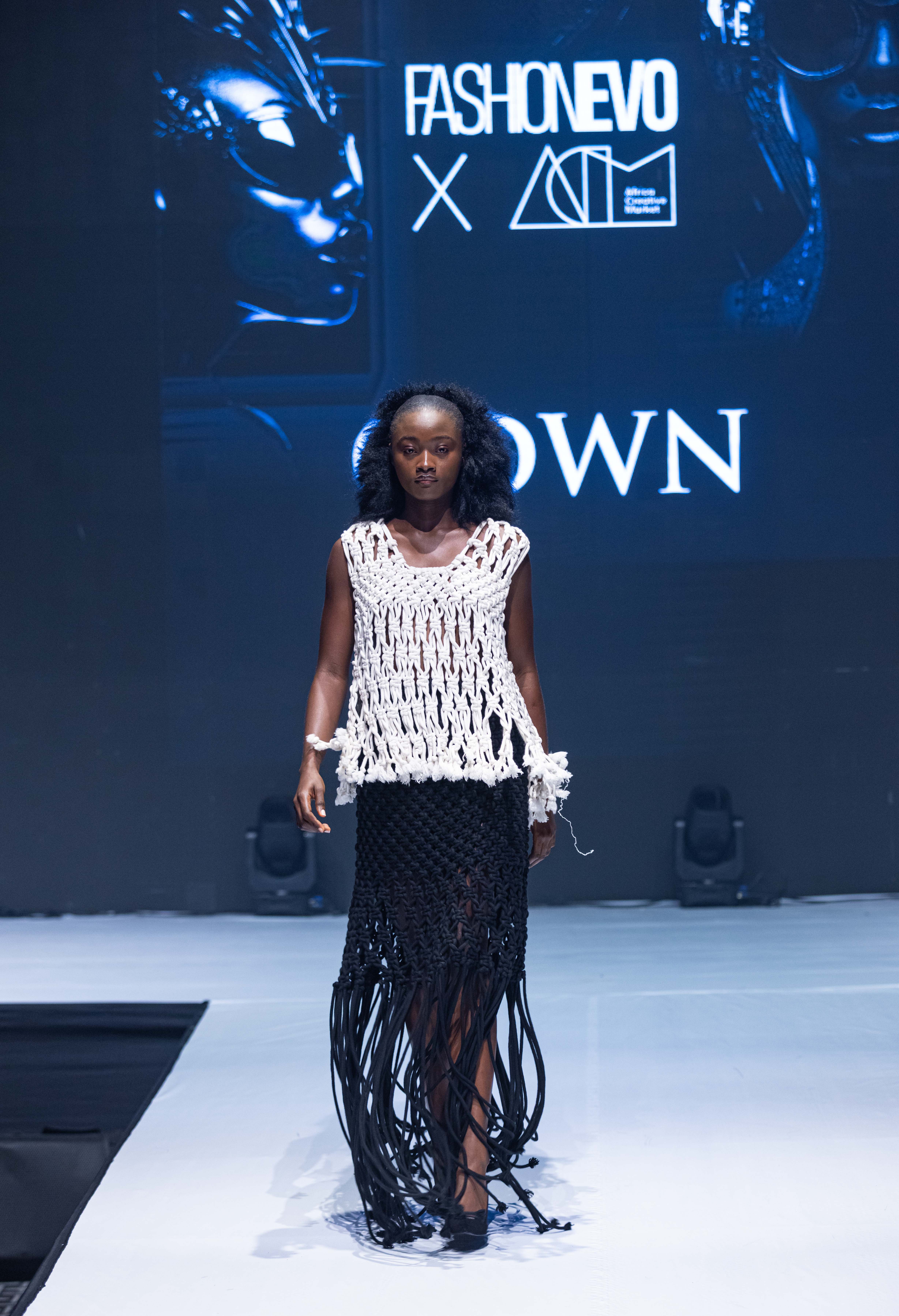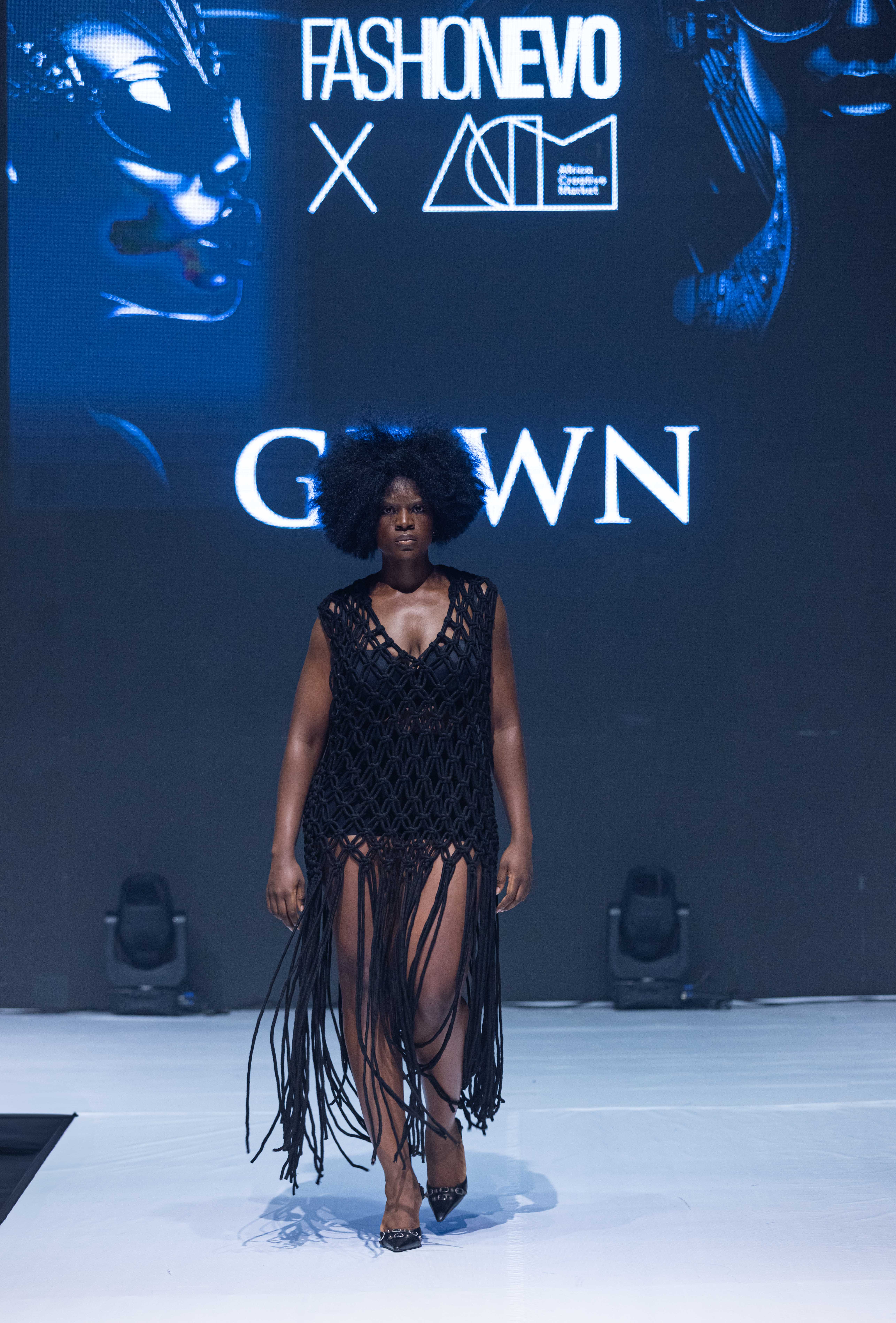 GDWN (@gdwn.ng) made a bold statement at the FashionEVO Fashion Show during ACM 2024. Their impressive display of knitwear and macramé designs exemplified their dedication to pushing the boundaries of creativity and craftsmanship. The expertise of GDWN in macramé was evident in every piece that graced the runway. Utilizing this intricate art form, which involves knotting fabric to create designs rather than traditional weaving or knitting, added a distinctive and artistic flair to their garments. The daring yet sophisticated loose, open-weave patterns in their knitwear designs made a striking fashion statement.