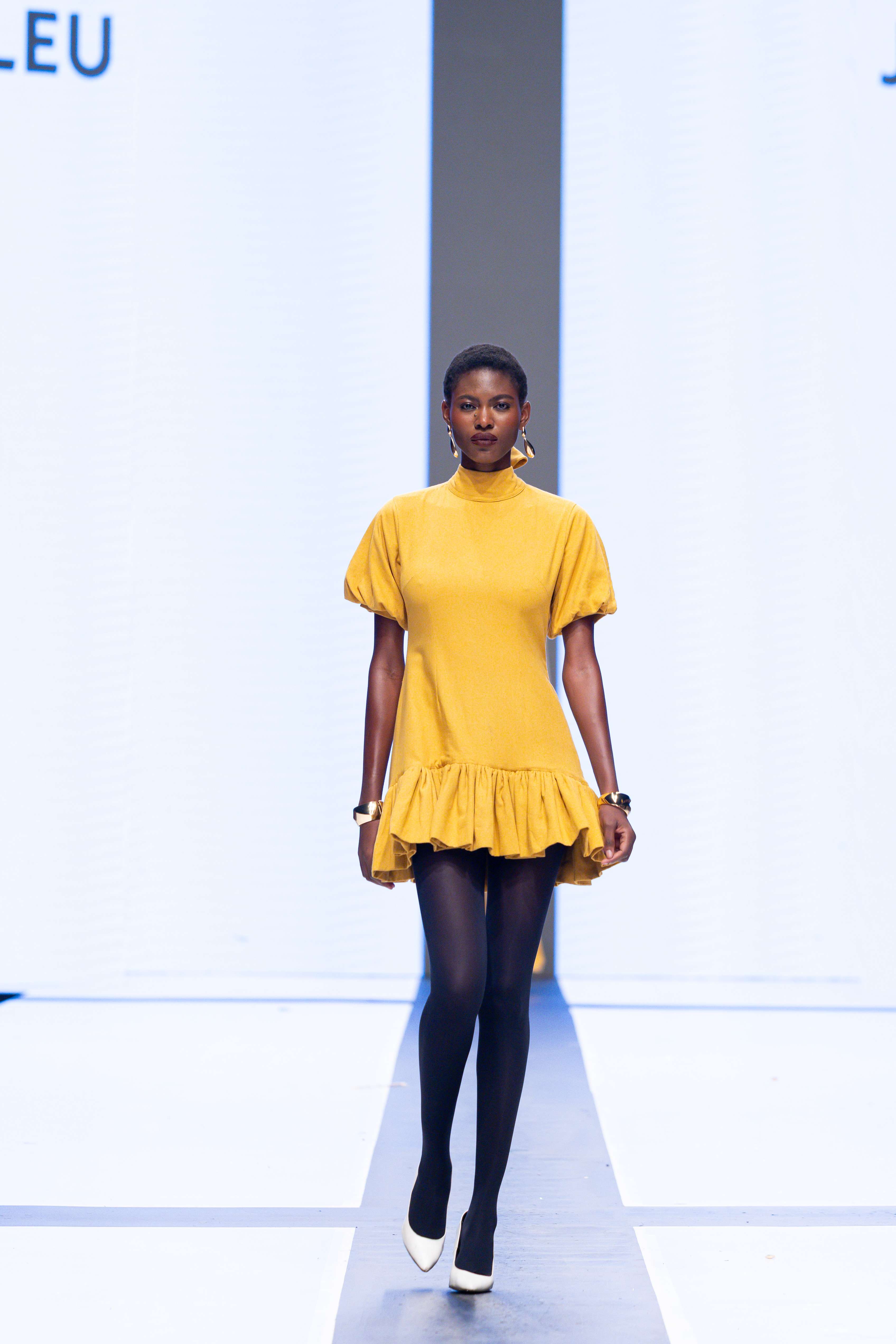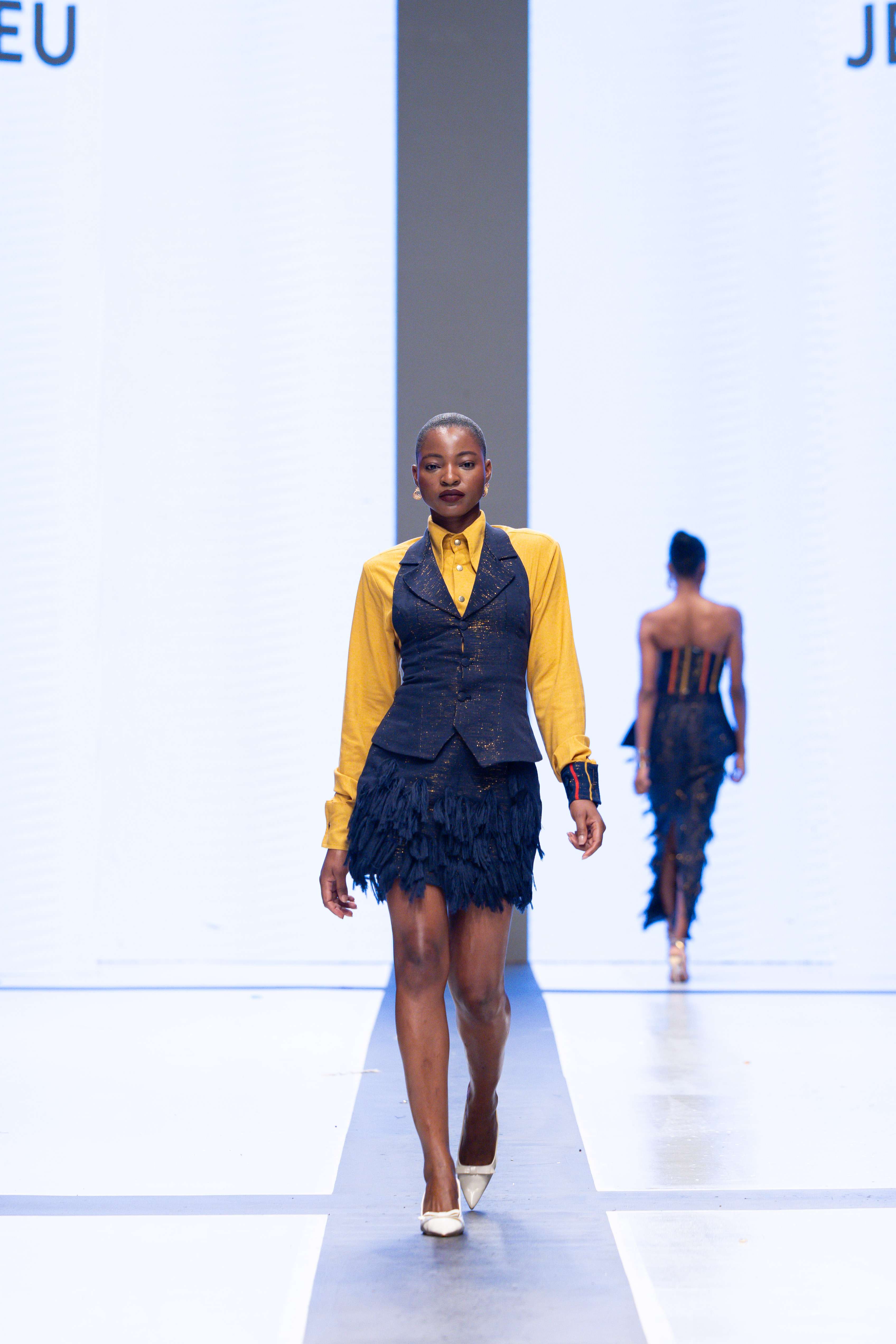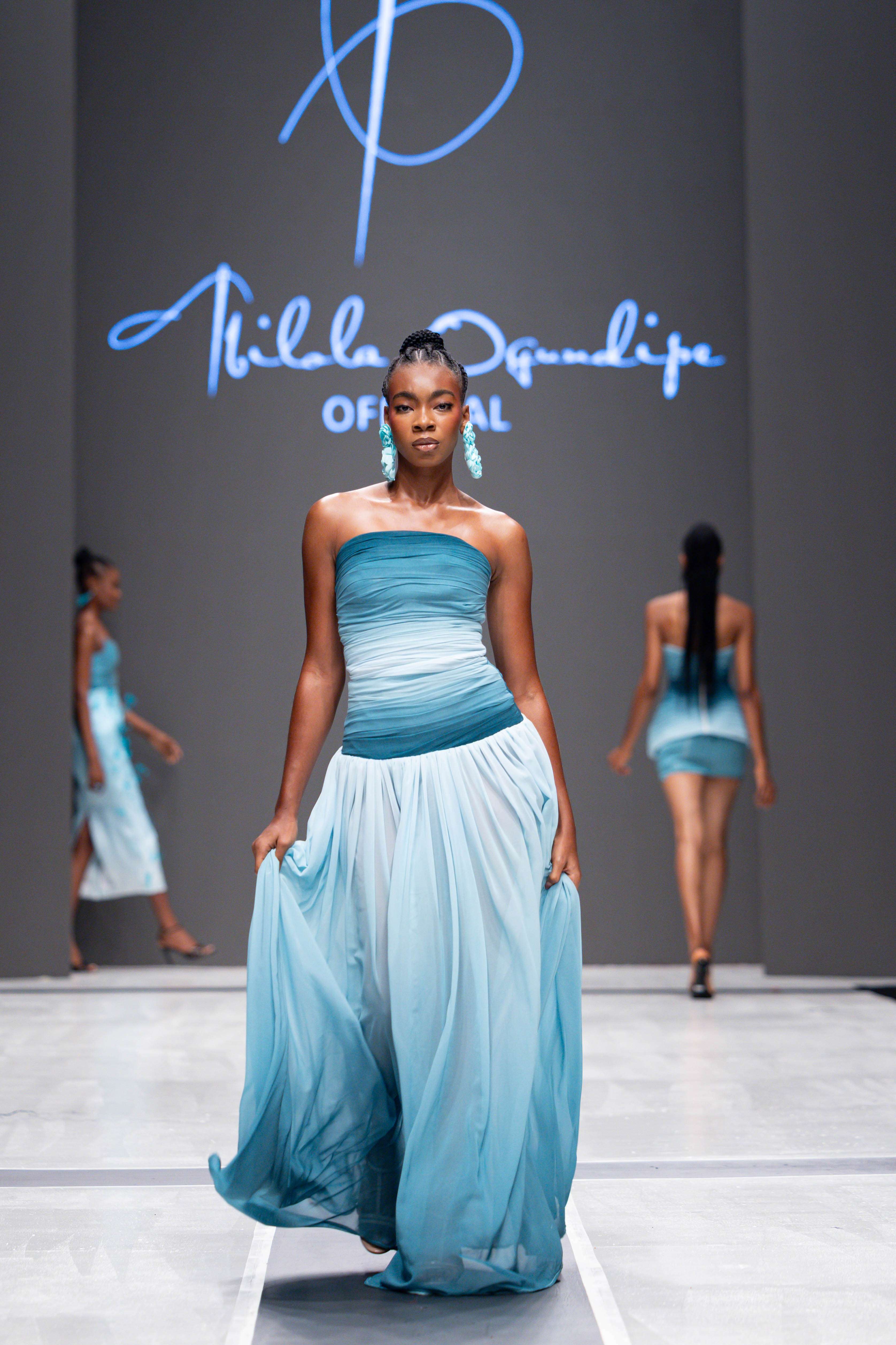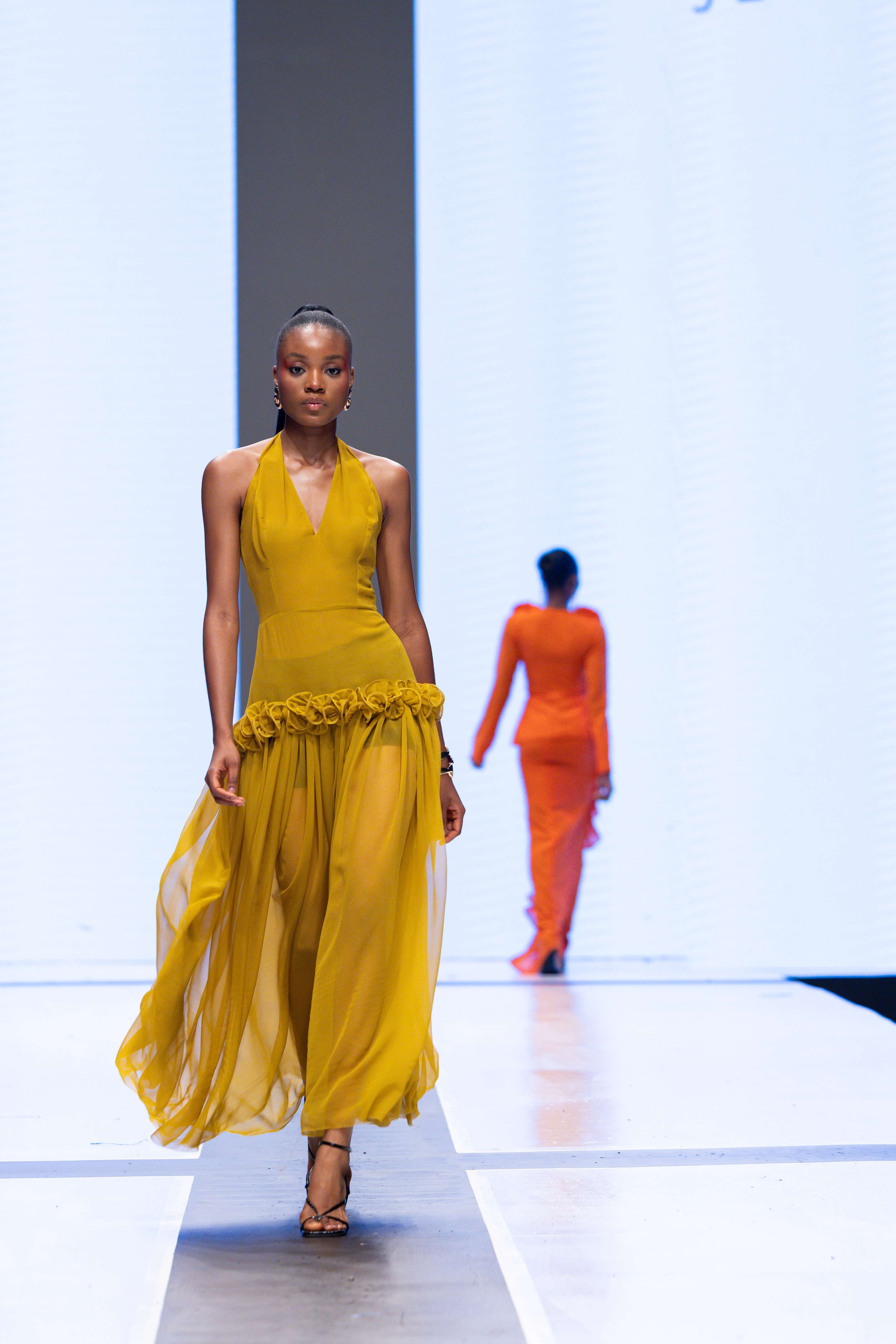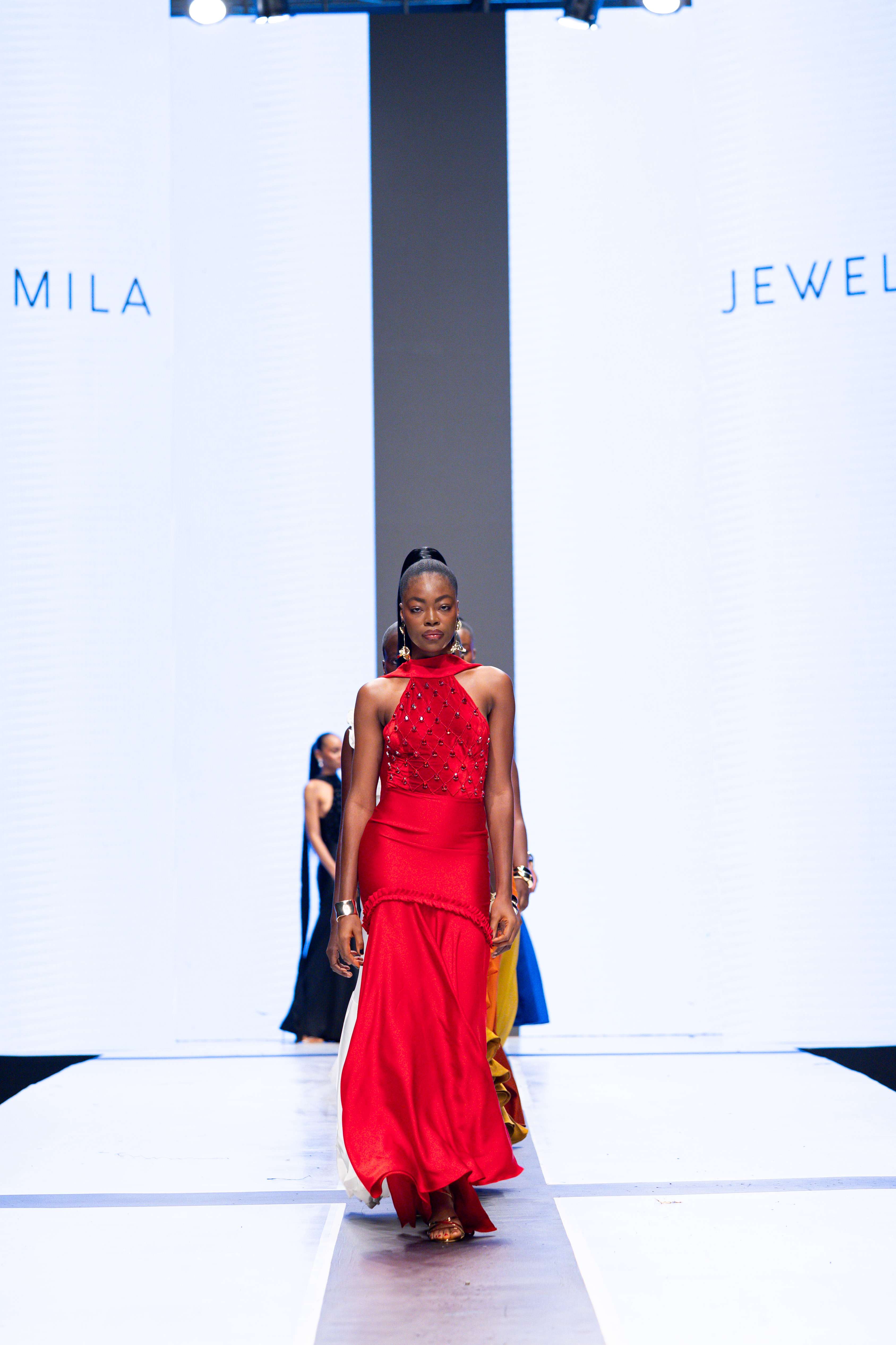 The show opened with Sevon Dejana, whose collection featured bold silhouettes that embodied feminine strength. The couture-inflected designs shimmered with intricate beaded cascades and sculptural lines, capturing the audience’s attention from the first look. Following this, Ibilola Ogundipe offered a softer take on womanhood, presenting flowing fabrics and feather accents that danced gracefully, reminiscent of moving water, while corseted details added a touch of elegance.
