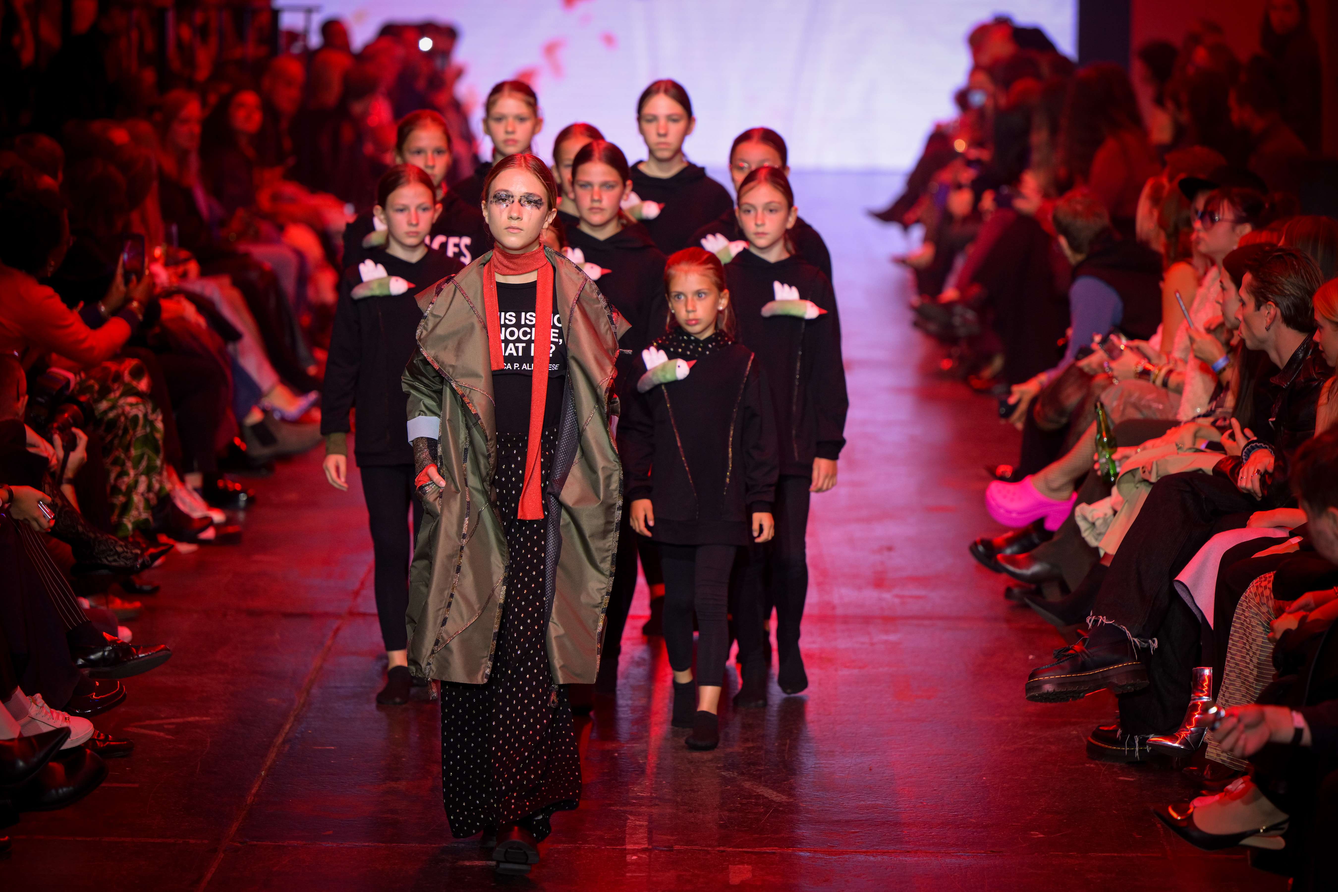 Simona Kogovšek’s “The Red Thread” collection serves as a powerful statement against violence and indifference. Emerging from a place of pain and courage, this collection intertwines military-inspired shades with delicate butterfly motifs, symbolising transformation and hope. Each garment embodies a story of resilience, expressing love as an act of courage. Simona’s designs challenge the notion of fashion as mere adornment, promoting the idea that clothing can serve as a voice for change and a reminder of our shared humanity.