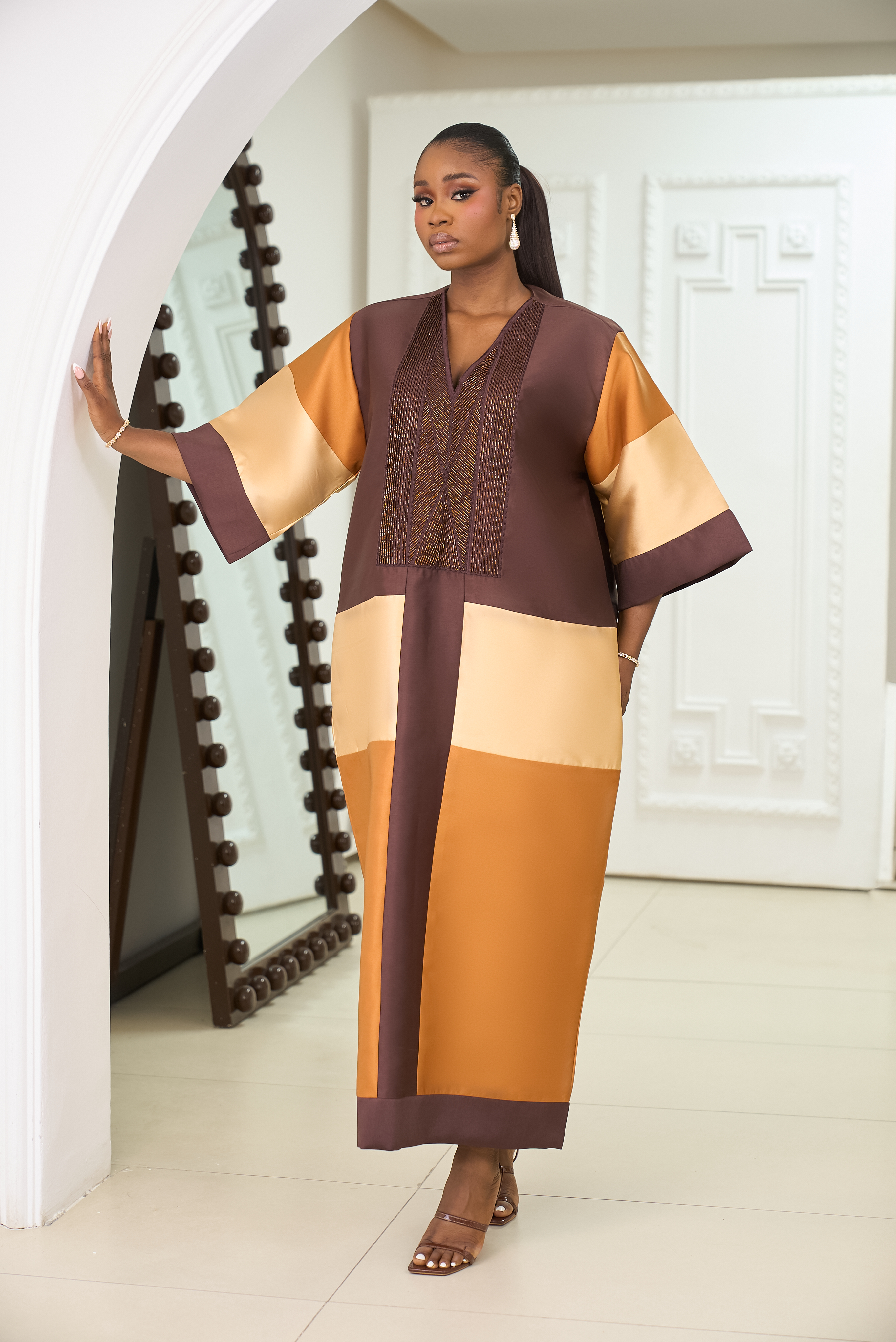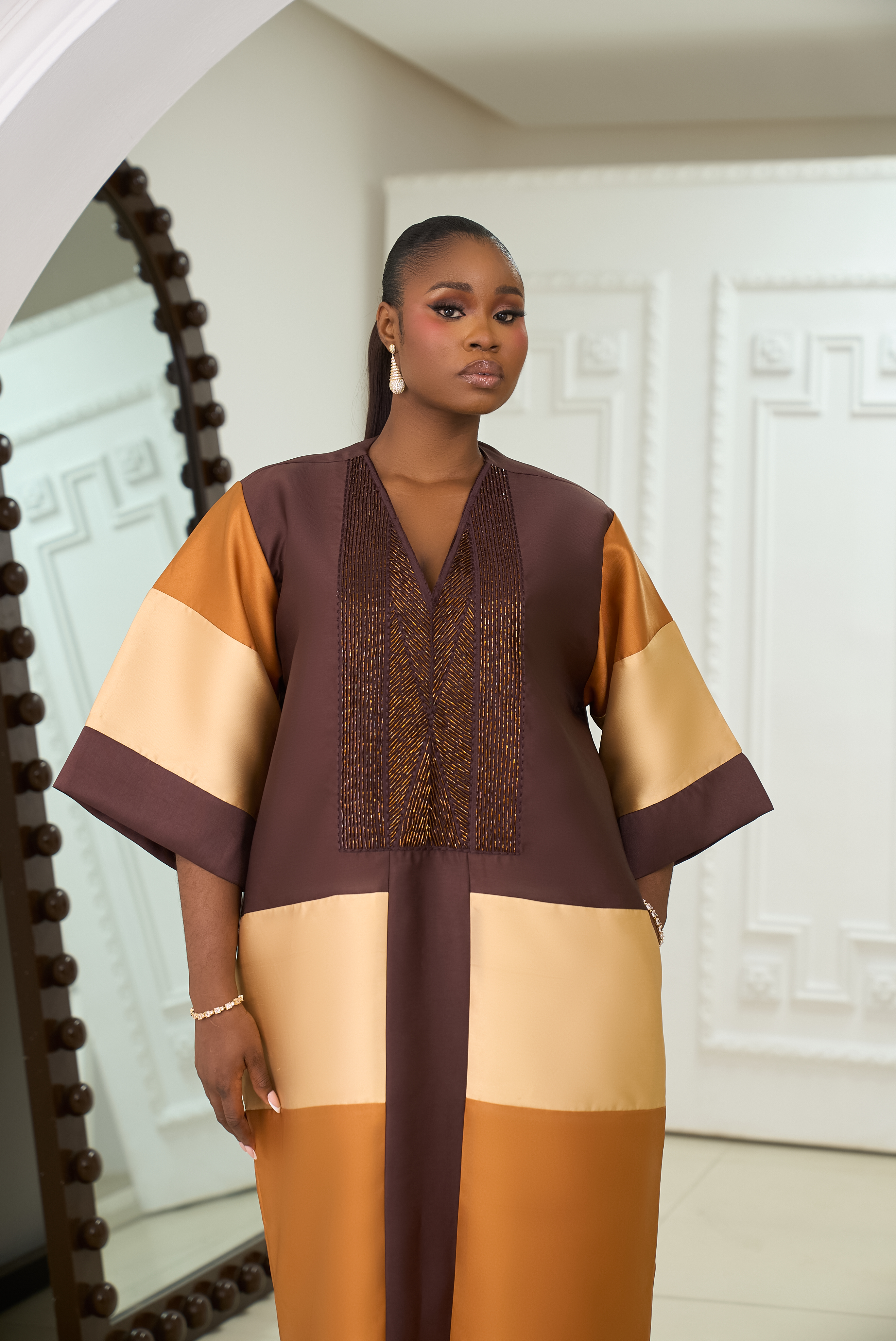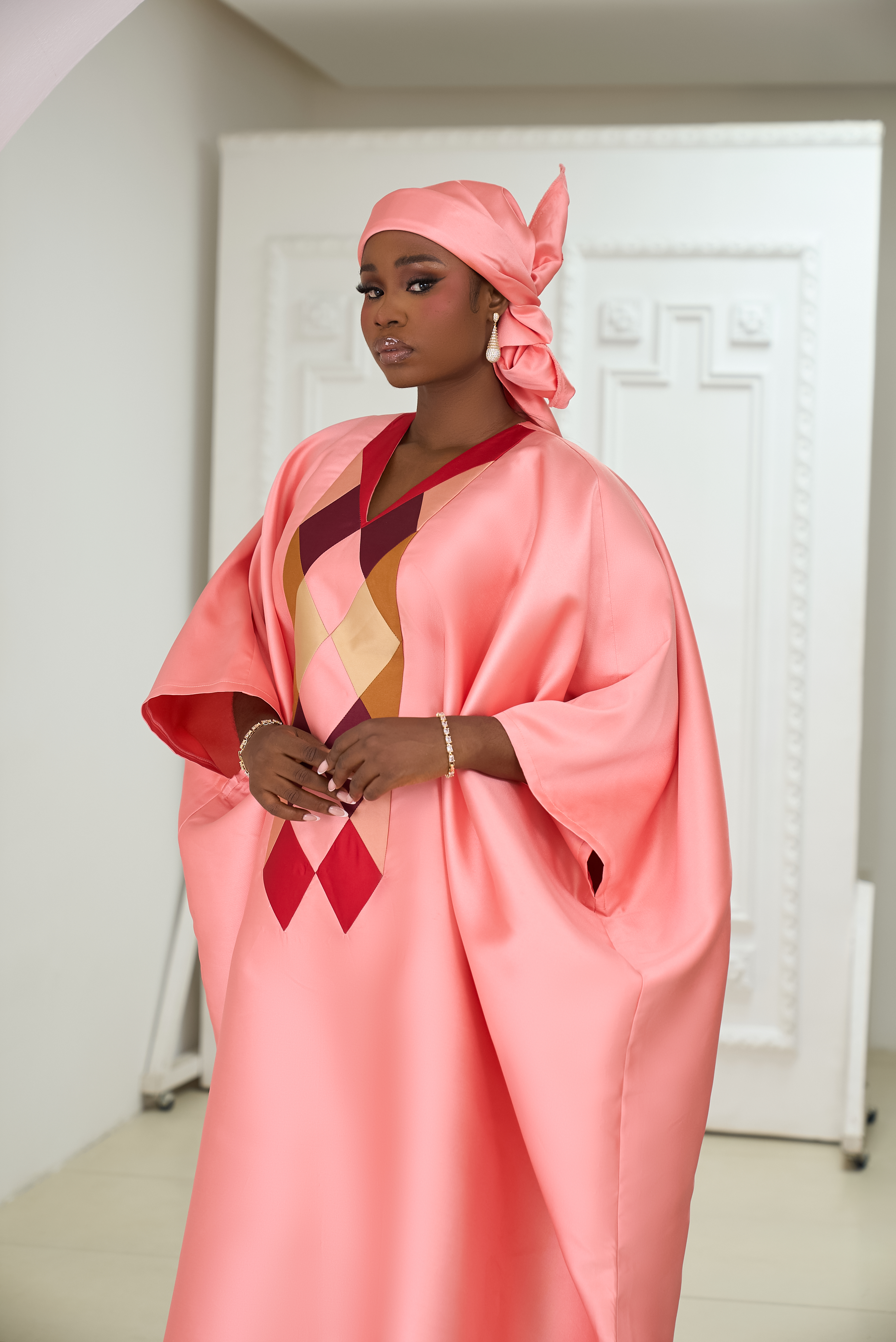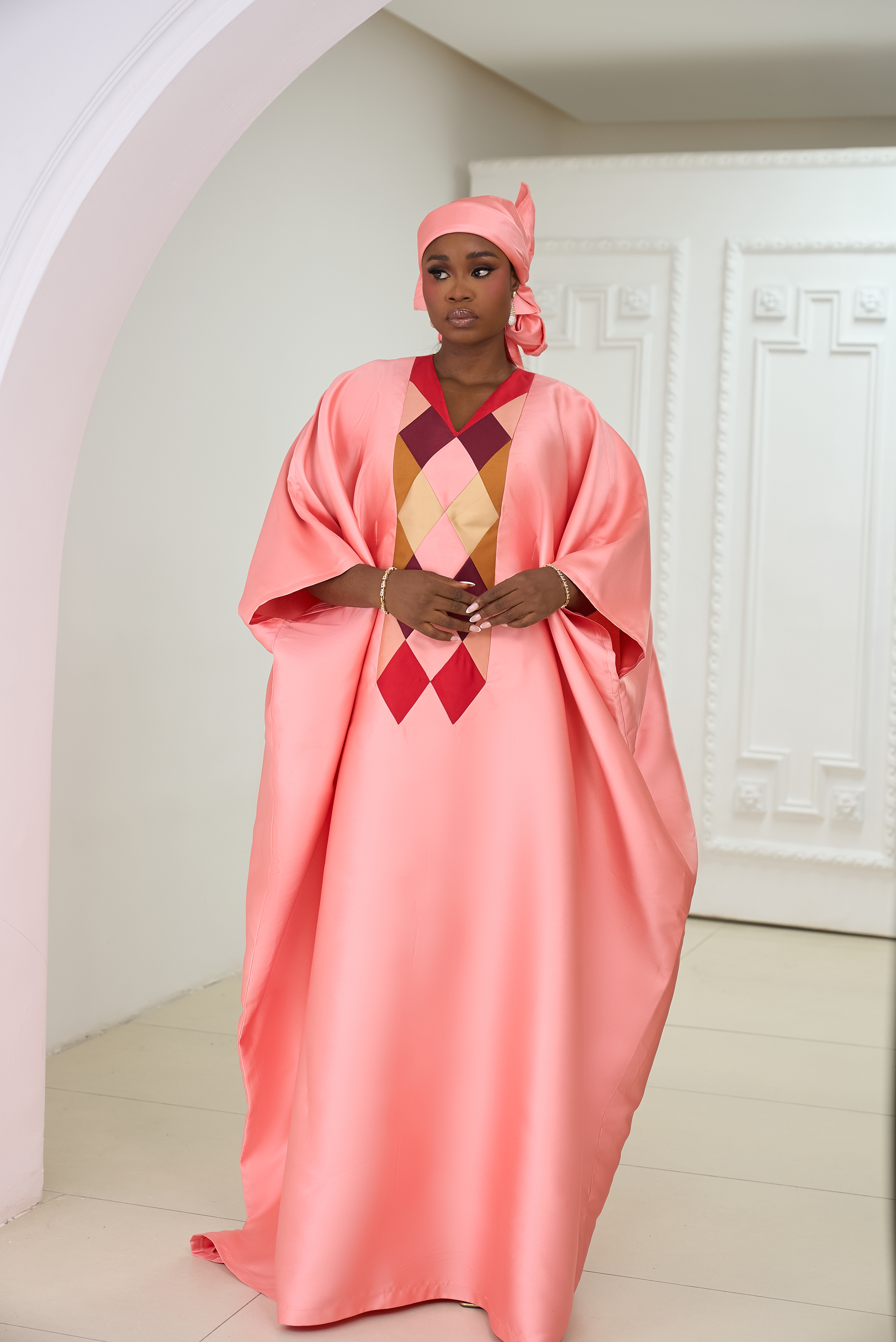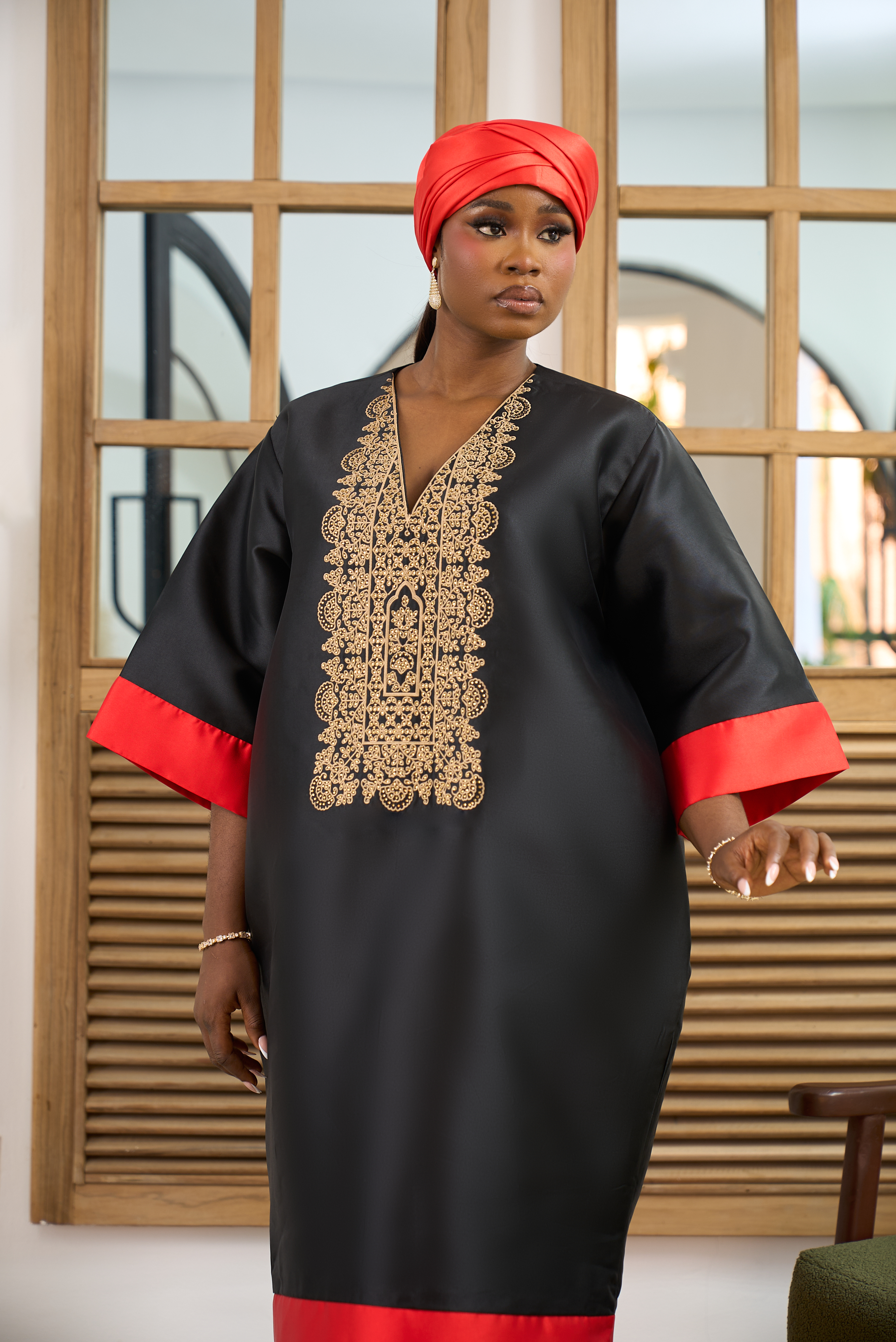 At the heart of this collection lies an appreciation for Africa’s rich cultural identity, expressed through flowing boubous and intricately designed kaftans. Each piece is thoughtfully tailored to embody comfort, luxury, and timeless appeal. The designs are defined by clean, delicate embellishments and a meticulous attention to detail that enhances femininity without compromising modesty.